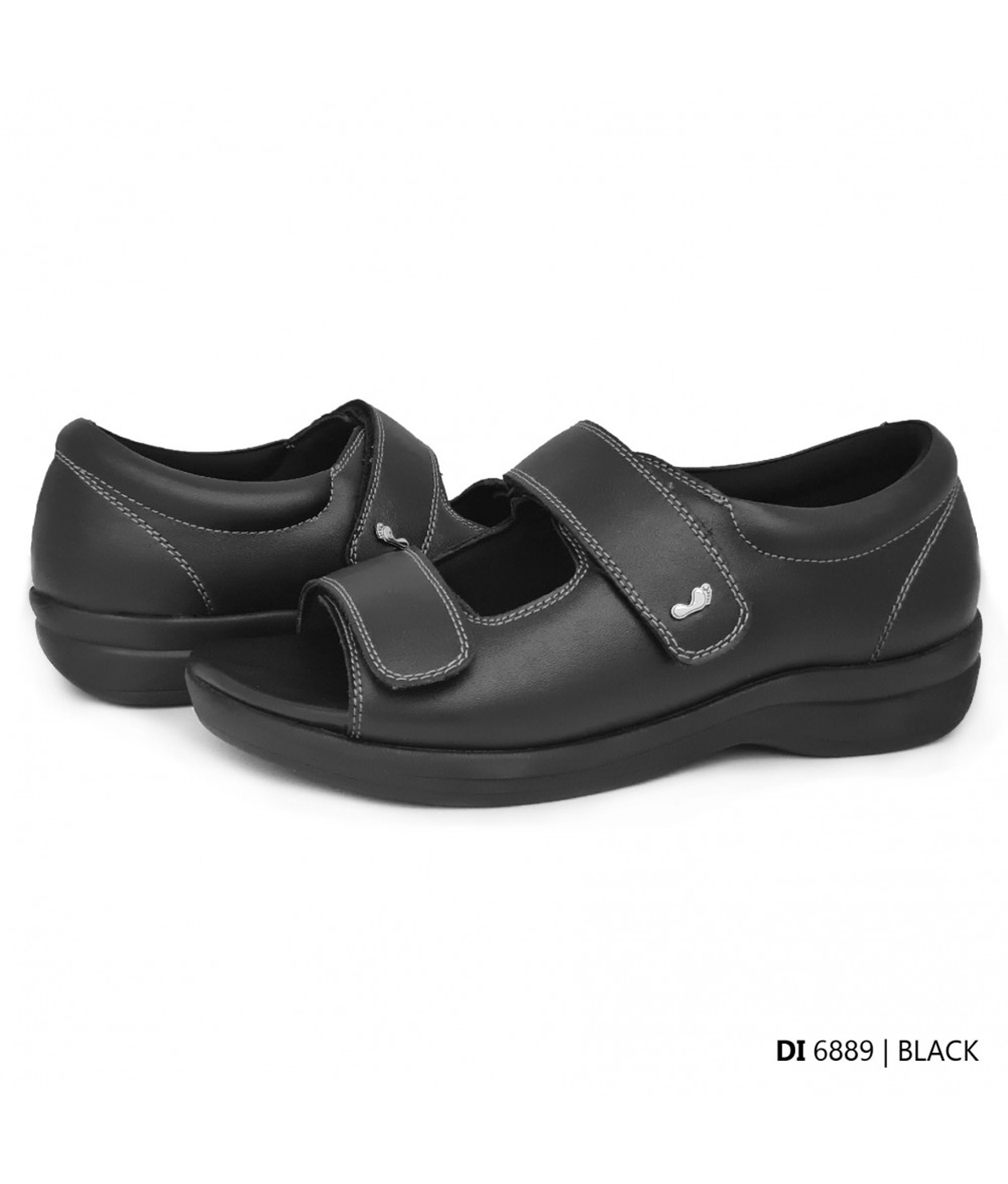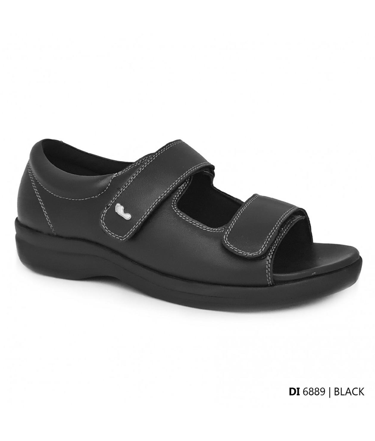 Diabetic sandal that offers protection and comfort for diabetic feet. These shoes are biomechanically engineered with shock absorption and even weight distribution to help prevent corn and callus formation that may lead to foot ulcers. Designed with a soft upper and a firm heel counter for added support and stability.