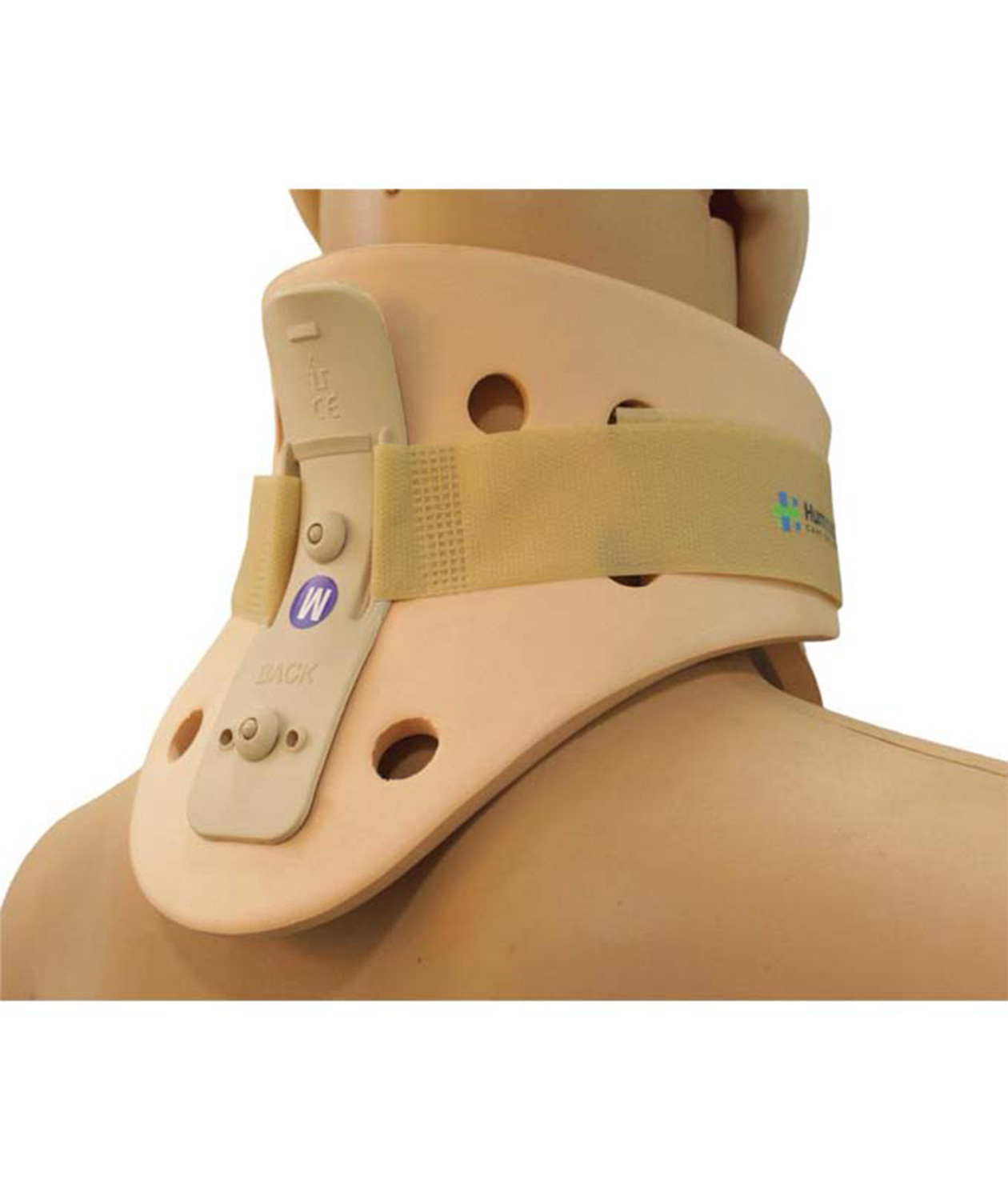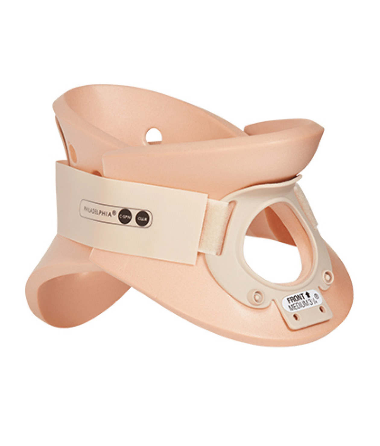 The Philadelphia Tracheotomy Collar is a rehabilitation collar that is designed to maintain neutral alignment of the cervical spine after injury to the neck. The collar contains a large trachea opening that allows carotid pulse monitoring and emergency tracheotomies.