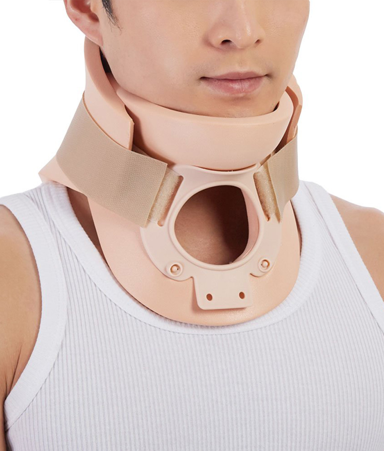 A firm neck collar that limits neck movement and provides strong support after injury, surgery, or strain to help protect the cervical spine.