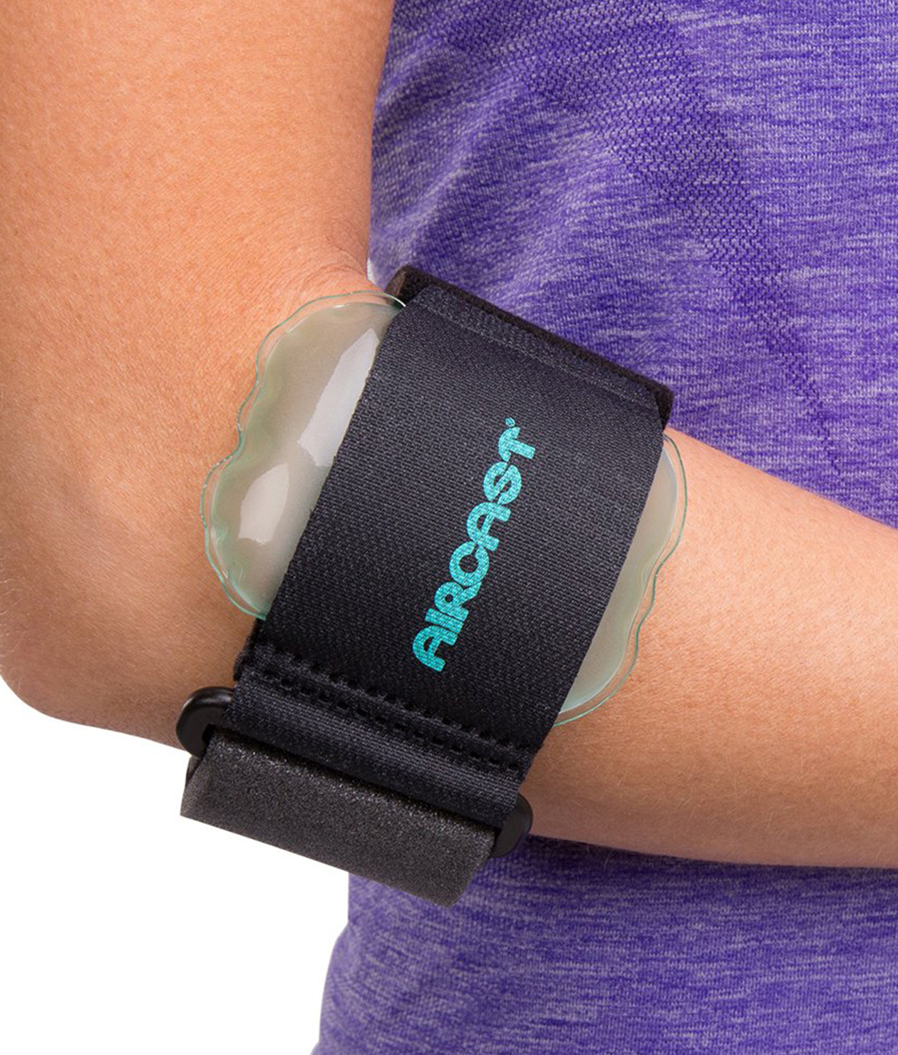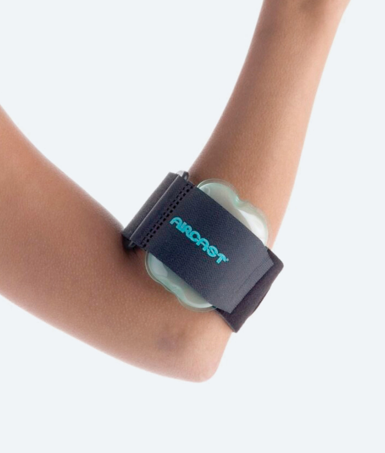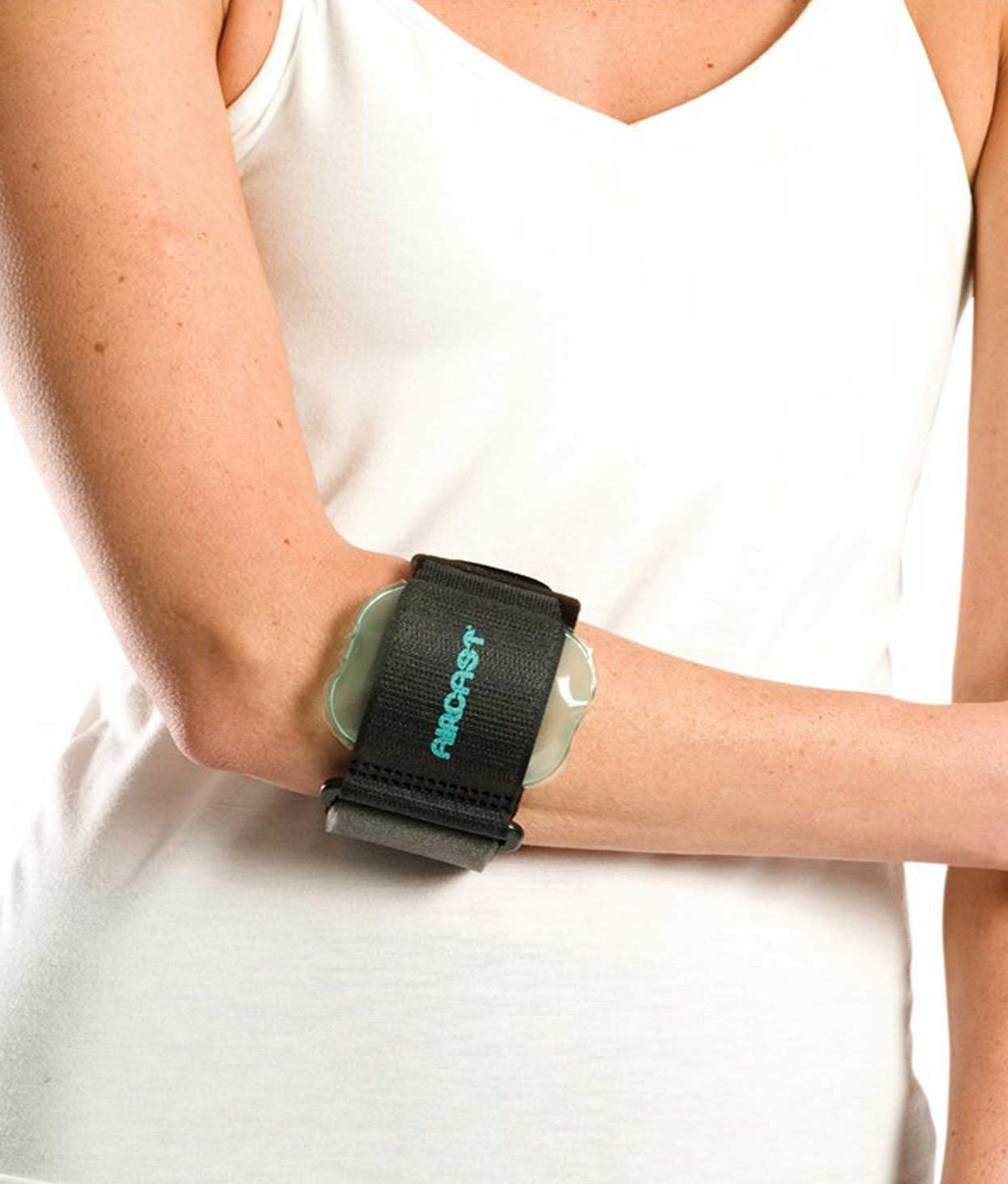 A forearm strap that helps reduce stress on elbow tendons, relieve pain, and provide support during repetitive arm movements or sports activities.